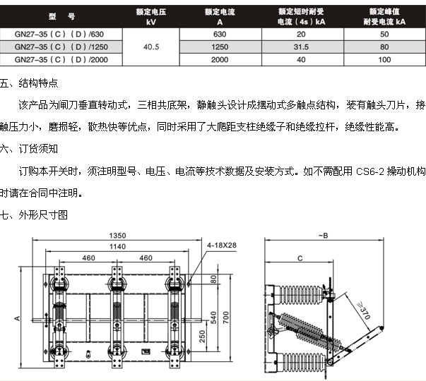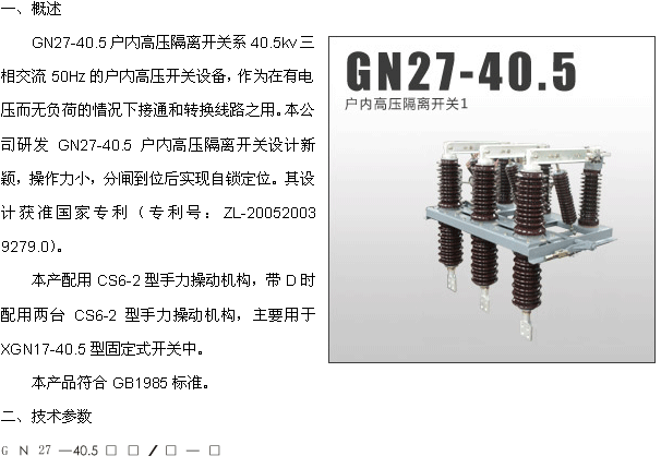GN27-40.5戶內(nèi)交流高壓隔離開關(guān)